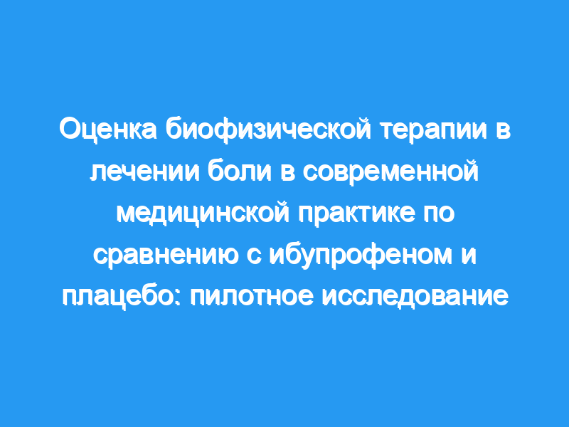 Мы пришли к выводу, что биофизическая терапия показала себя эффективной и безопасной процедурой для лечение боли в современной медицинской практике.