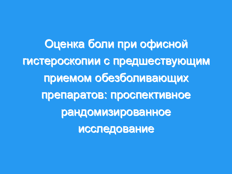 Оценить, уменьшило ли введение обезболивающего препарата за час до проведения офисной гистероскопии боль и другие побочные эффекты. План исследования: Проспективное рандомизированное исследование было проведено с участием 200 пациенток, перенесших офисную гистероскопию с ноября 2011 г. по май 2012 г. 100 пациенток получили 1000 мг парацетамола и 600 мг ибупрофена за час до процедуры, а 100 не получали никаких лекарств.