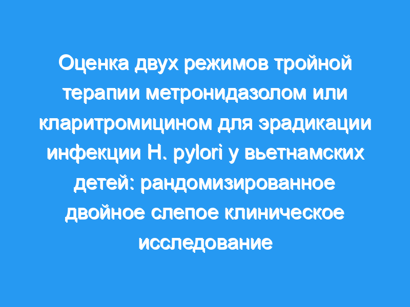 Ликвидация инфекции Helicobacter pylori у детей в развивающихся странах нуждается в дальнейших исследованиях, на основе которых будут разработаны рекомендации по лечению. Целью исследования было сравнить две 2-недельные тройные терапии в рандомизированном двойном слепом исследовании.