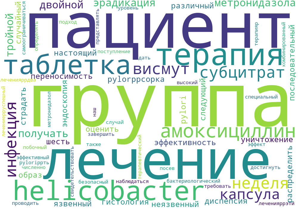 Успешная эрадикация была достигнута у 20/21 (95%) пациентов, получавших лечение. с тройной терапией (группа 1) и у 17/22 (77%) пациентов, получавших двойную терапию (группа 2) (р = 0,2). Побочные эффекты наблюдались у 9/21 (43%) пациентов 1-й группы и у 9/22 (41%) пациентов 2-й группы (р = 0,9). Все они были самоограничивающимися и не требовали специального лечения.