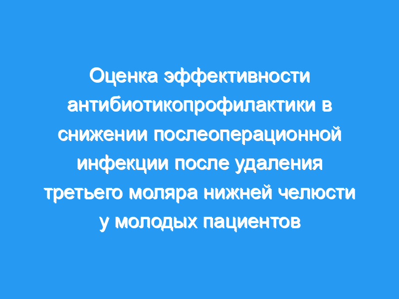 В этом исследовании оценивалось влияние антибиотикопрофилактики на послеоперационные осложнения после удаления нижнего третьего моляра у молодых пациентов. Пациенты и методы: Мы извлекли 59 третьих моляров нижней челюсти у 59 пациентов со средним возрастом 15 лет (диапазон 12-19 лет). Пациенты были включены в исследование, когда рентгенограммы во время операции показали, что сформировалась только коронка зародыша зуба. Пациенты были рандомизированы на 2 группы: тестовую группу и контрольную группу. Испытуемая группа получала 2-граммовые таблетки амоксициллина за 1 час до операции, а контрольная группа не получала антибактериальной терапии. В исследуемую группу вошли 32 пациента, 20 из которых были женщинами и 12 мужчинами, средний возраст составил 15 лет. В контрольную группу вошли 27 пациентов, 12 из которых были женщинами и 15 мужчинами, средний возраст составил 15 лет. Послеоперационные осложнения, такие как боль, отек, раневая инфекция и лихорадка, регистрировались с помощью анкеты, заполненной пациентом в течение недели после удаления. Снятие швов и анкетирование были выполнены хирургом, который не знал предоперационного режима.