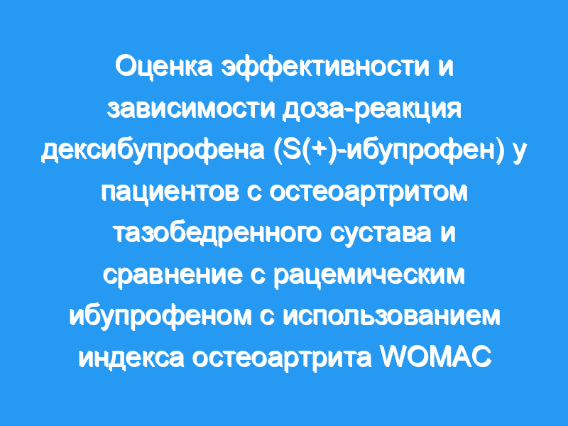 Лечение нестероидными противовоспалительными препаратами является наиболее распространенной фармакологической терапией ревматических заболеваний. Для симптоматического лечения болезненных расстройств основным требованием должно быть соотношение доза-реакция НПВП, что трудно доказать в исследованиях, поскольку ревматические заболевания неоднородны с точки зрения клинического участия. Целью этого двойного слепого рандомизированного исследования было сравнить изолированный активный энантиомер дексибупрофена (S(+)-ибупрофен) с двойной дозой рацемического ибупрофена и показать зависимость доза-реакция дексибупрофена при болезненном остеоартрите тазобедренного сустава.
