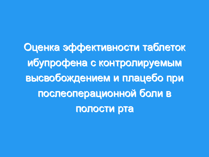 Семьдесят четыре амбулаторных пациента с послеоперационной болью после челюстно-лицевой хирургии были рандомизированы на двойной слепой основе для получения однократной пероральной дозы таблетки с контролируемым высвобождением (CRT), содержащей 600 мг ибупрофена, двух CRT ибупрофена по 600 мг или плацебо.