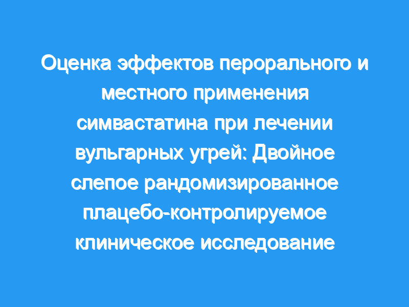 в общей сложности 76 пациентов с вульгарными угрями средней и очень тяжелой степени, все получавшие азитромицин перорально (250 мг, 3 раза в неделю, перорально) и гель бензоилпероксида для местного применения (5%, один раз в день), были разделены на три группы: 1) Пероральная группа получала 20 мг/день перорального приема симвастатина и чистого раствора, 2) Местная группа получала 1% раствор симвастатина для местного применения и пероральное плацебо, 3) Группа плацебо получала пероральное плацебо и чистый раствор. Тяжесть акне определялась с помощью глобальной системы классификации акне (GAGS) в начале и после 8 недель лечения.
