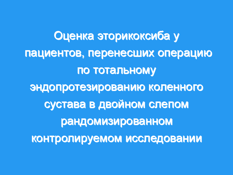 Послеоперационное применение эторикоксиба в дозах 90 и 120 мг у пациентов, перенесших тотальное эндопротезирование коленного сустава, превосходит плацебо и не уступает ибупрофену в уменьшении боли в покое, а также снижает потребление опиоидов (морфина). Регистрация клинического испытания: NCT00820027.