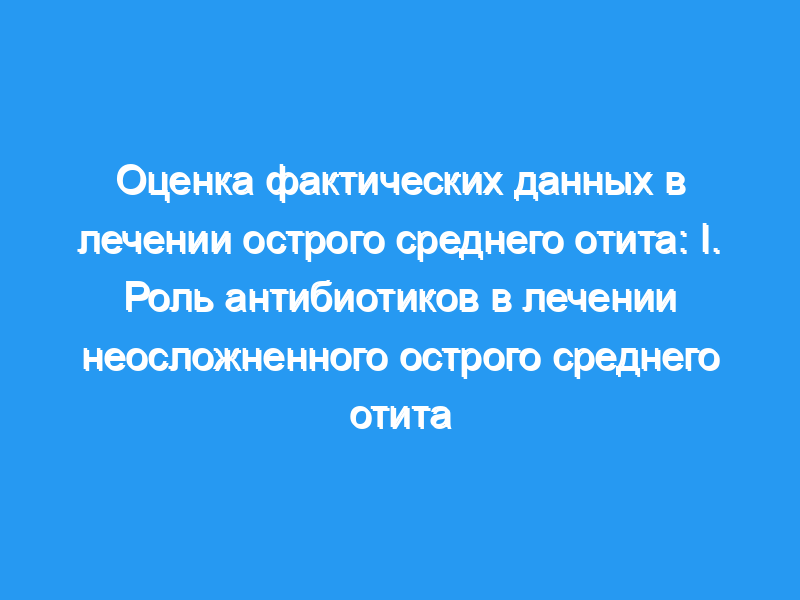 Обобщить литературу по естественной истории АОМ, эффективности лечения антибиотиками при неосложненном АОМ и относительной эффективности конкретных схем приема антибиотиков. Источники данных: Семь электронных баз данных для статей, опубликованных в период с 1966 по март 1999 года, а также списки литературы в сборниках, опубликованных статьях, отчетах и руководствах. Выбор исследования: Два врача независимо оценивали каждую статью. Были включены исследования, посвященные АОМ у детей в возрасте от 4 недель до 18 лет, были исключены исследования, посвященные детям с иммунодефицитом или черепно-лицевыми аномалиями. Рандомизированные контролируемые исследования (РКИ) использовались для оценки эффективности антибиотиков, а РКИ и когортные исследования использовались для оценки естественной истории АОМ. Из 3491 выявленной ссылки 80 (2,3%) соответствовали нашим критериям включения. Извлечение данных: Два врача независимо собрали данные и оценили качество исследований, используя валидированную шкалу для РКИ и 8 компонентов качества для когортных исследований. Обобщение данных: Были получены оценки случайных эффектов объединенных абсолютных различий в показателях исходов, и была оценена неоднородность как показателей, так и различий в показателях. У детей с АОМ, не получавших антибиотики, частота клинических неудач в течение 1-7 дней составляла 19% (95% доверительный интервал: 0,10-0,28) и было мало гнойных осложнений. Когда пациентов лечили амоксициллином, частота клинических неудач в течение 2-7 дней снижалась до 7%, что на 12% (95% доверительный интервал: 0,04-0,20). Побочные эффекты, в первую очередь желудочно-кишечные, чаще встречались у детей, получавших цефиксим, чем у детей, получавших ампициллин или амоксициллин. Они также чаще встречались у детей, получавших амоксициллин-клавуланат, чем у детей, получавших азитромицин.