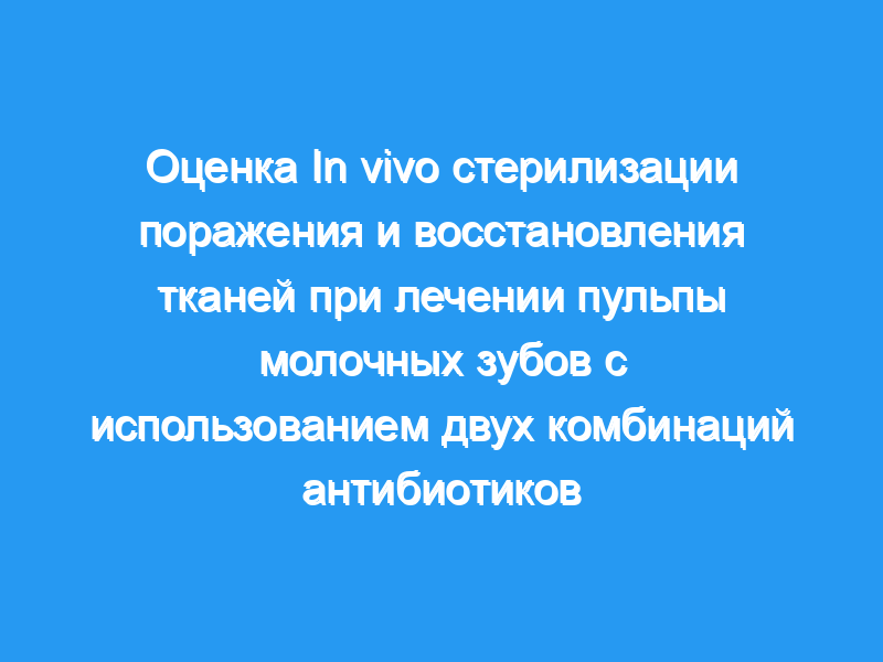 Целью данного исследования является оценка и сравнение клинической и рентгенологической эффективности комбинации ципрофлоксацина, Миноциклина, Метронидазола с комбинацией ципрофлоксацина, Миноциклина и Тинидазола при использовании для стерилизации повреждений и восстановления тканей молочных зубов. Метод: 25 здоровых детей, посещающих отделение детской и профилактической стоматологии Стоматологического колледжа D.A.P.M.R.V., Бангалор, Индия, в возрасте 6-9 лет, у которых было 30 инфицированных молочных зубов, отобраны и разделены на 2 группы. В группе А смесь 3mix-MP ципрофлоксацина, метронидазола и миноциклина помещали на дно пульповой камеры, закрывая отверстия корневых каналов. В группе В смесь ципрофлоксацина, тинидазола и миноциклина помещали в виде слоя на пол пульповой камеры. Процедура была завершена за один визит. Послеоперационное клиническое обследование проводилось через 1,6,12 и 24 месяца. Послеоперационное рентгенологическое обследование проводилось через 6, 12 и 24 месяца.