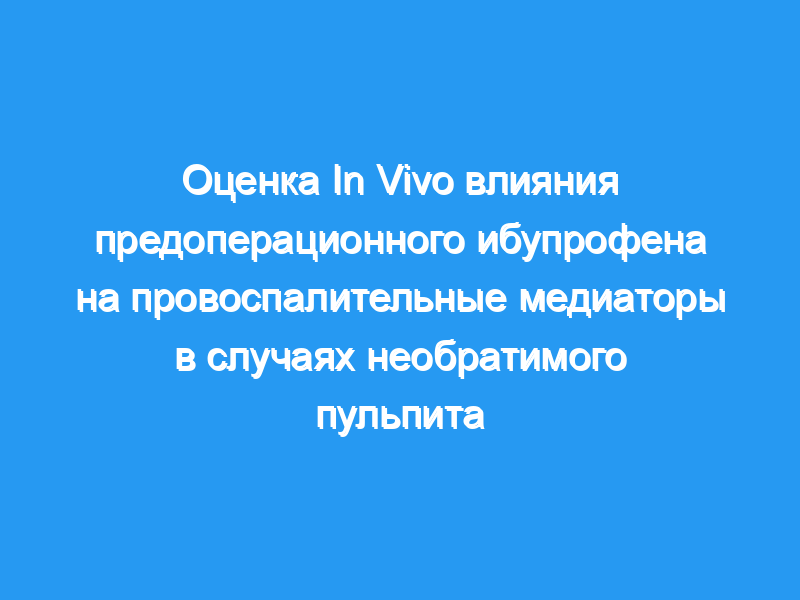 Предоперационное введение нестероидных противовоспалительных препаратов было предложено в качестве метода повышения эффективности местных анестетиков и уменьшения послеоперационной боли в случаях симптоматического необратимого пульпита. Однако эффекты ибупрофена на молекулярном уровне до сих пор неизвестны. Следовательно, целью данного исследования было сравнить уровни провоспалительных медиаторов в пульпе зубов с необратимым пульпитом у пациентов, которые лечились ибупрофеном перед операцией, по сравнению с теми, кто этого не делал.