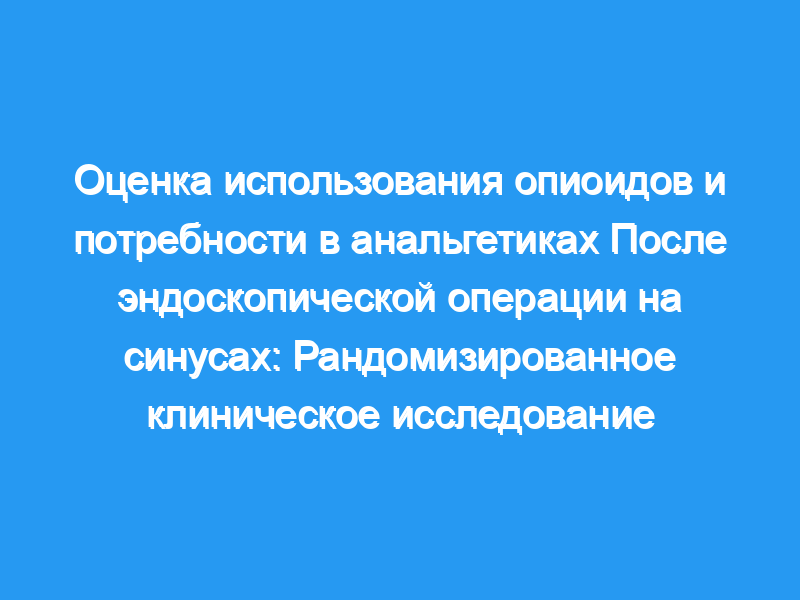 Важность: Эпидемия опиоидов вызвала интерес к оптимизации назначения опиоидов после обычных операций. Недавние исследования показали широкий спектр схем назначения анальгетиков после эндоскопической синусовой хирургии (ESS).