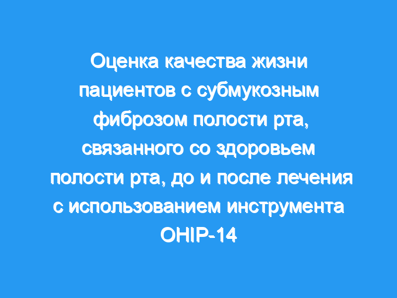 Целью настоящего исследования была оценка качества жизни (OHRQoL) пациентов с субмукозным фиброзом полости рта (OSMF), связанного со здоровьем полости рта, до и после стандартного лечения.