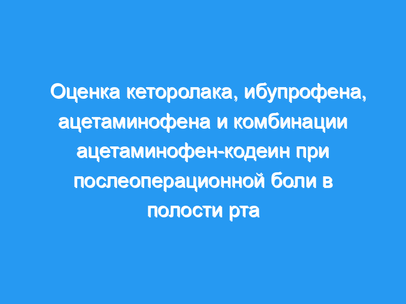 Обезболивание было аналогичным для кеторолака 10 и 20 мг и ибупрофен 400 мг, однако эти методы лечения превосходили только ацетаминофен и комбинацию ацетаминофен-кодеин.