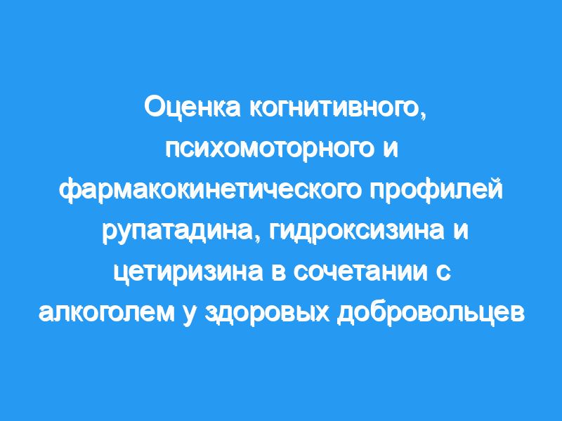 Основной целью исследования была оценка влияния ALC 0,8 г/кг на эффекты RUP (10 мг и 20 мг) на ЦНС. Также была проведена оценка фармакокинетики алкоголя и RUP. Восемнадцать здоровых молодых добровольцев обоего пола приняли участие в первой фазе рандомизированного перекрестного двойного слепого плацебо-контролируемого исследования. С интервалом в 2 недели они получали шесть процедур: (а) плацебо (PLA), (б) ALC отдельно и ALC в комбинации с: (в) гидроксизином 25 мг (HYD), (г) цетиризином 10 мг (CET), (е) RUP 10 мг или (f) RUP 20 мг. В начале и несколько раз после этого семь тестов на психомоторную работоспособность (постукивание пальцами, мелкая моторика, нистагм, временная оценка, частота слияния критических мерцаний, отмена «d2», простая реакция) и одиннадцать субъективных самоотчетов (опьянение, сонливость, настороженность, неуклюжесть, гнев, невнимательность, эффективность, счастье, враждебность, интерес и экстраверсия) были проведены. Были применены двусторонние (лечение, время) АНОВЫ для повторных измерений каждой переменной вместе с многомерным непараметрическим подходом. Концентрации алкоголя в плазме, а также RUP и его метаболитов определяли количественно с помощью валидированных методов иммунофлуоресценции и LC/MS/MS соответственно. Кривые плазменного времени для всех соединений были проанализированы с помощью независимых от модели методов.