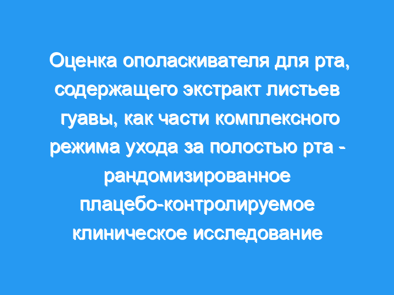 Ополаскиватель для рта из гуавы может использоваться в качестве эмпирического дополнения к профессиональной профилактике полости рта благодаря его многофакторным свойствам и благоприятному восприятию. Однако необходимо провести долгосрочные исследования, чтобы подтвердить его использование в течение длительного периода времени. Регистрация испытания: Клиническое испытание было проспективно зарегистрировано 17 февраля 2017 года в Реестре клинических испытаний Индии (CTRI/2017/02/007898). p>