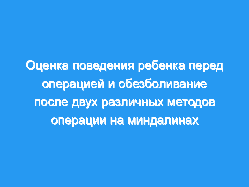 Целью этого исследования было сравнить поведение ребенка перед операцией с опытом боли и беспокойства в связи с двумя методами операции на миндалинах, связать предыдущий опыт операции / тонзиллита с беспокойством и болью, а также сравнить оценку боли детьми, родителями и медсестрой. Способ: Девяносто два ребенка (5-15 лет) с нарушением дыхания во сне (SDB) и с рецидивирующим тонзиллитом или без него были рандомизированы для частичной резекции миндалин/тонзиллотомии (TT) или полной тонзиллэктомии (TE). Меры: Родители: Контрольный список поведения ребенка (CBCL). Дети: Опросник состояния и тревожности для детей (STAIC) и семибалльная шкала лицевых болей (FPS). Родители/персонал: семибалльная шкала оценки вербальной боли (VPRS). Обезболивающими были опоиды, парацетамол и диклофенак.