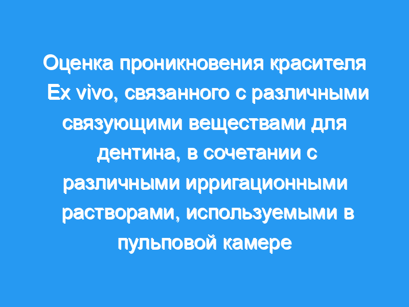 Сравнить влияние гипохлорита натрия (NaOCl), хлоргексидина, повидон-йода и аскорбата натрия на проникновение красителя, связанного с различными дентинными клеями, используемыми в пульповой камере. Методика: Сто шестнадцать коренных зубов нижней челюсти были разделены на восемь групп по 12 зубов в каждой с помощью режима орошения и адгезивной системы. Крышу пульповых камер и корнеплоды удаляли при водяном охлаждении. Пульповые камеры в экспериментальных группах орошали 5,25% NaOCl, 0,2% хлоргексидином, 5% в/в повидон-йодом или 5,25% NaOCl с последующим добавлением аскорбата натрия и восстанавливали Surefil с использованием Prime & Bond NT или Xeno III при каждом режиме орошения. Двадцать зубов были использованы в качестве контрольных образцов, в которых перед склеиванием не применялось дезинфицирующее средство. Десять зубов из каждой группы погружали в 2%-ный краситель метиленовый синий и оценивали проникновение красителя. Данные были статистически проанализированы с помощью U-тестов Крускала-Уоллиса и Манна-Уитни. Два образца в каждой группе были исследованы с помощью сканирующей электронной микроскопии для оценки межфазного зазора.