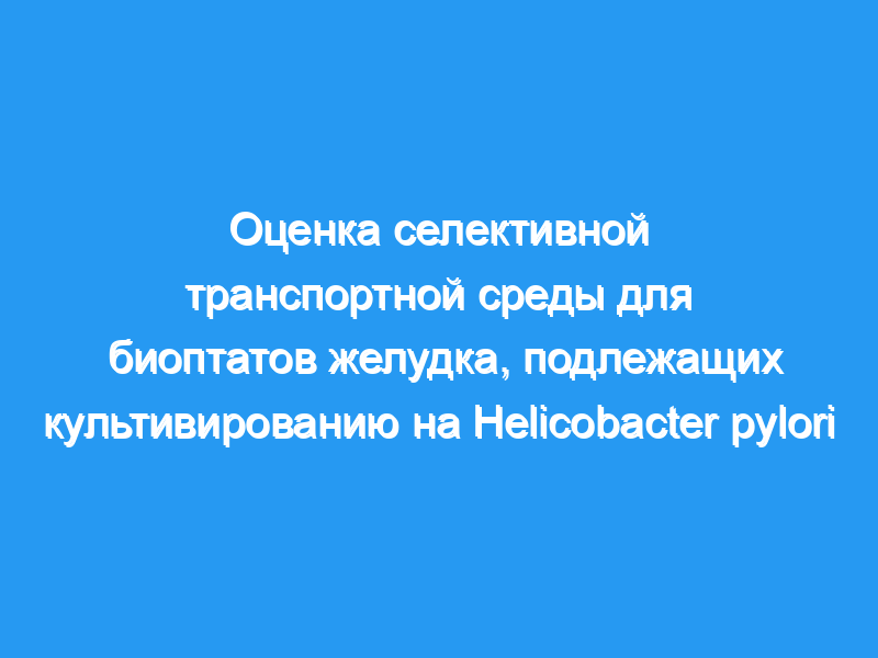 Селективная транспортная среда была оценена для сохранения H. pylori из 254 биопсий желудка. образцы, собранные в сельской местности в Китае, где культивирование невозможно.