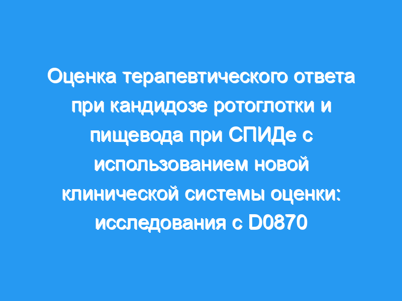 Мы использовали проспективно собранные данные о 114 пациентах, получавших несколько доз азола D0870. Пациенты были инфицированы чувствительными к флуконазолу (n = 49) или устойчивыми к нему микроорганизмами (MIC, >, or = 16 мг/мл, n = 61). Пациенты с резистентностью к флуконазолу имели более низкое количество CD4+ клеток в исходном состоянии, больше симптомов (Р = 0,0006), более высокую частоту дисгевзии (Р = 0,004), дисфагии (Р = 0,006) и боли в горле (Р = 0,0034), а также большее покрытие полости рта бляшками Candida.