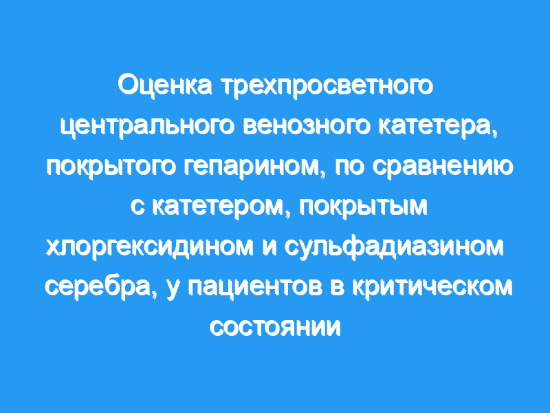 Сравнить частоту колонизации катетера и связанных с катетером инфекций кровотока между катетерами, покрытыми гепарином, и катетерами, покрытыми синергической комбинацией хлоргексидина и сульфадиазина серебра. Дизайн: Рандомизированное контролируемое клиническое исследование.