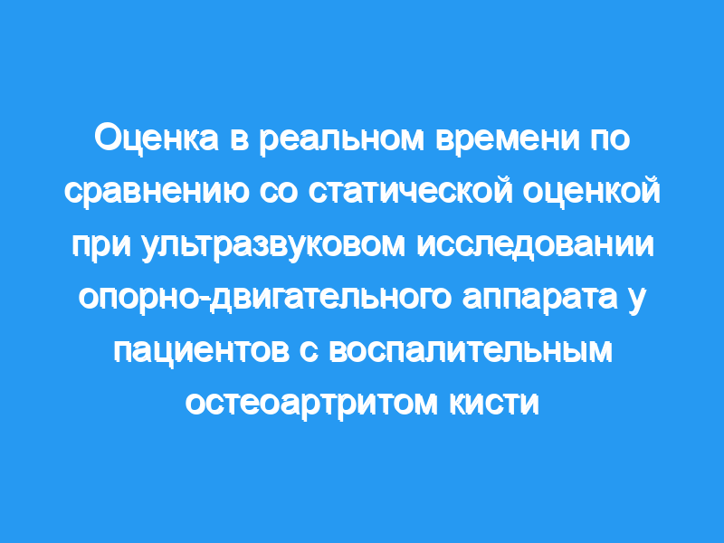 Соответствие между ультразвуковым исследованием в реальном времени и статическим ультразвуковым исследованием при заболеваниях опорно-двигательного аппарата не изучалось. Мы изучили это совпадение при воспалительном ОА кисти.