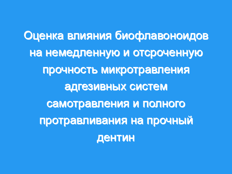 Целью данного исследования является оценка влияния двух биофлавоноидов (эпигаллокатехин-3-галлат [EGCG] и катехин) и ингибитора белка (хлоргексидин [CHX]) на немедленную и отсроченную прочность микротравматической связи адгезивных систем самотравления и тотального травления с прочным дентином.