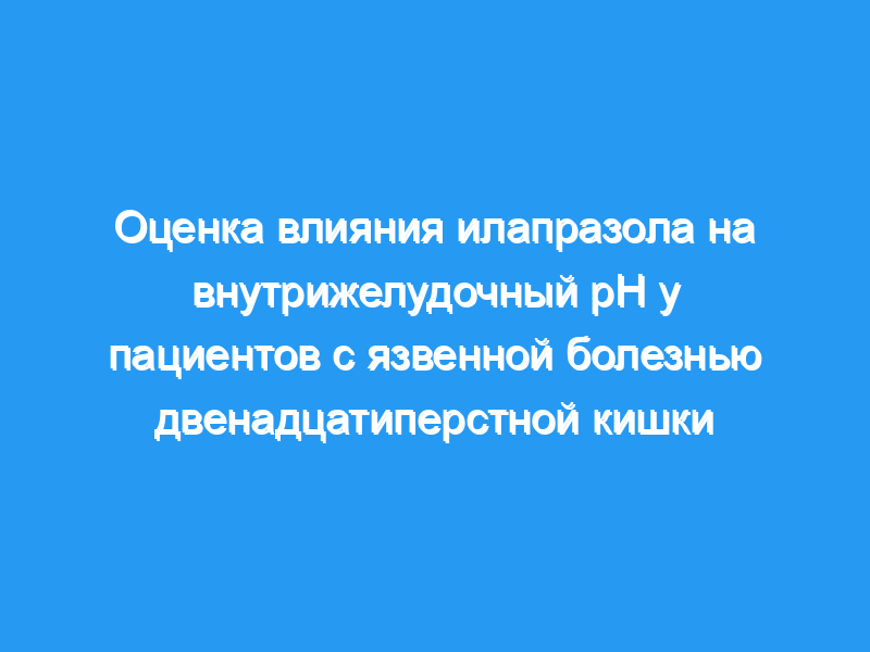 Оценить влияние энтеросолюбильных таблеток илапразола на внутрижелудочный рН у пациентов с язвенной болезнью двенадцатиперстной кишки.