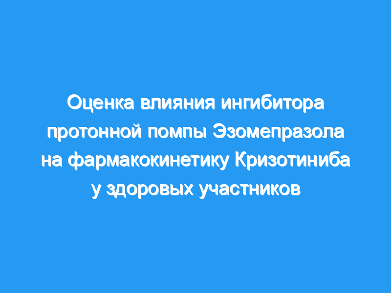 Кризотиниб представляет собой низкомолекулярный многоцелевой ингибитор тирозинкиназы, который проявляет пониженную растворимость в воде при более высоком рН. В этом открытом рандомизированном исследовании фазы 1 (NCT01549574) оценивалось влияние многократных доз ингибитора протонной помпы эзомепразола на фармакокинетику (PK) кризотиниба и безопасность кризотиниба с эзомепразолом или без него у здоровых взрослых.