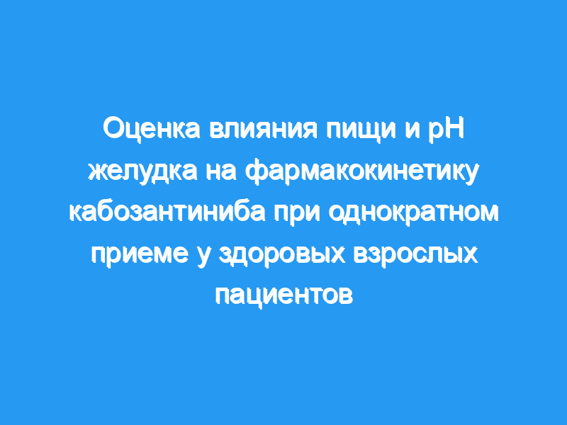 Таким образом, кабозантиниб не следует принимать во время еды (пациенты не должны принимать пищу в течение по крайней мере 2 часов до и по крайней мере 1 часа после введения). В исследовании DDI (исследование 2) 90% доверительные интервалы (CI) вокруг отношения средних наименьших квадратов кабозантиниба с эзомепразолом по сравнению с кабозантинибом отдельно для AUC0-inf находились в пределах 80%-125%, верхний 90% ДИ для Cmax составил 125,1%. Из-за низкого очевидного риска развития DDI одновременное применение ИПП или более слабых средств, изменяющих рН желудка, с кабозантинибом не противопоказано.