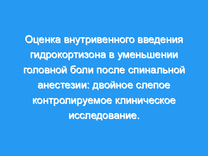 В исследование были включены шестьдесят пациентов с головной болью после спинальной анестезии. Пациенты были случайным образом распределены на две группы, 30 пациентов получали только традиционную терапию (полный постельный режим, гидратацию, ацетаминофен и петидин). Другие 30 пациентов получали традиционную терапию плюс внутривенное введение гидрокортизона (сначала 200 мг, затем 100 мг TID в течение 48 часов). Среднее значение (+/- SD) интенсивности головной боли через 0, 6, 24 и 48 часов после начала лечения измеряли с помощью визуальной аналоговой шкалы.
