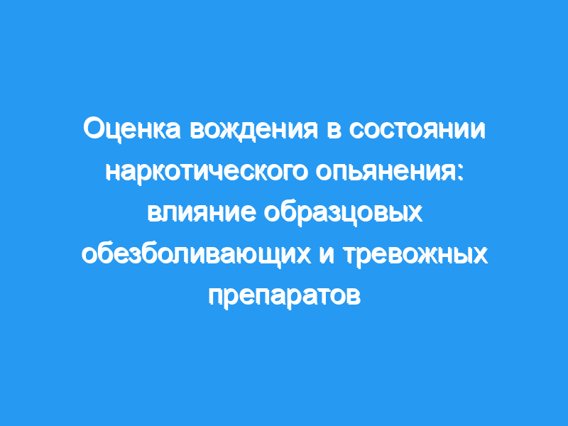 Вождение в состоянии рассеянности и под воздействием наркотиков представляет собой серьезный риск для безопасности дорожного движения, заболеваемости и смертности. В рамках продолжающейся исследовательской программы мы изучили влияние обычно назначаемой комбинации лекарств для облегчения боли: алпразолама, бензодиазепина и препарата гидрокодона, комбинации опиатов и ацетаминофена, на имитируемый протокол вождения.
