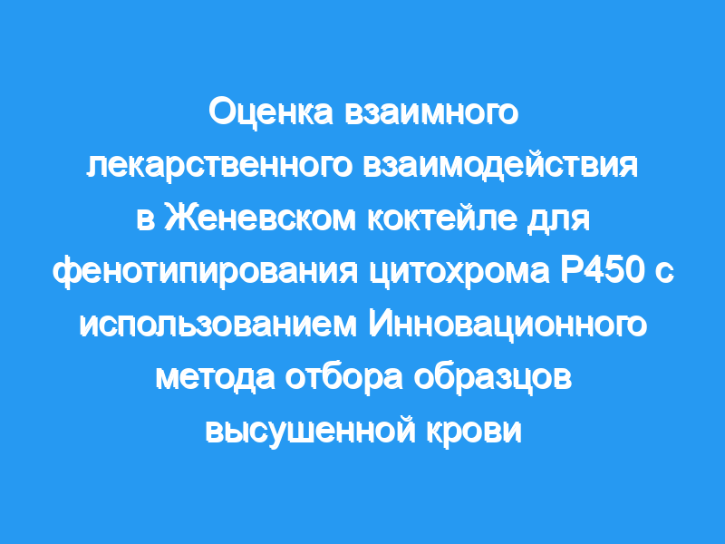 В заключение, Geneva cocktail в сочетании с инновационным устройством для отбора проб DBS можно использовать в качестве теста для одновременного фенотипирования CYP.
