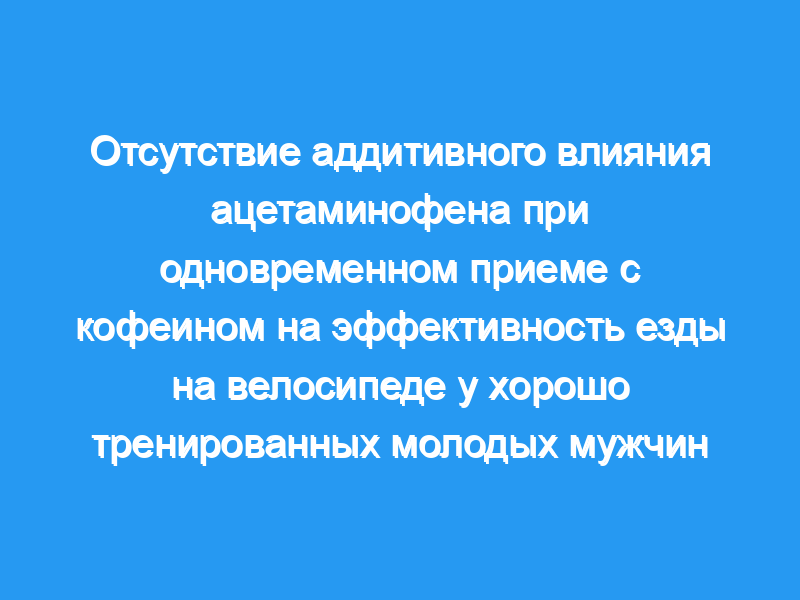 Четырнадцать мужчин [возраст (средний ± SD): 26 ± 6 лет, Vo2max: 63,9 ± 5,0 мЛ·мин-1·кг-1] завершили четыре рандомизированных исследования с ацетаминофеном (1500 мг), кофеином (5 мг·кг массы тела-1), комбинированным кофеином и ацетаминофеном (кофеин + ацетаминофен) или плацебо.