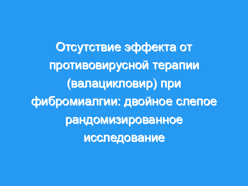 Изучить влияние противовирусного соединения валацикловира на боль и болезненность у пациентов с синдромом фибромиалгии (ФМ). Шестьдесят пациентов были рандомизированы в двойное слепое плацебо-контролируемое 6-недельное исследование. Первичным результатом было изменение интенсивности боли (по визуальной аналоговой шкале). Вторичными показателями результатов были баллы по миалгии (миалгический балл) и опросник влияния фибромиалгии (FIQ).
