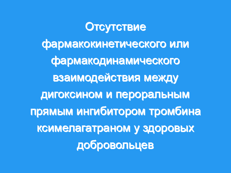 В заключение, в этом исследовании не наблюдалось фармакокинетического или фармакодинамического взаимодействия между дигоксином и ксимелагатраном.