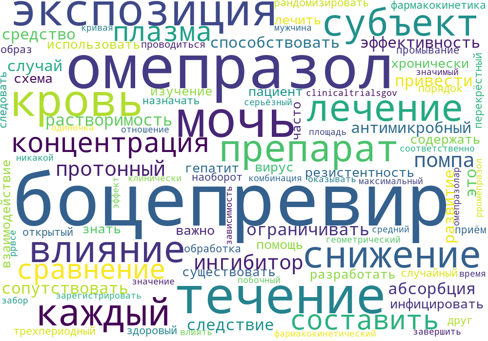 Ингибиторы протонной помпы (ИПП) могут ограничивать растворимость сопутствующих препаратов, что может привести к снижению абсорбции и экспозиции. Следствием этого может быть снижение эффективности, а в случае антимикробного средства это может способствовать развитию резистентности. Пациентов, хронически инфицированных вирусом гепатита С, можно лечить с помощью схемы, содержащей боцепревир, и важно знать, существуют ли взаимодействия между ИПП и боцепревиром. Это исследование было разработано для изучения влияния часто используемого ИПП, омепразола, на фармакокинетику боцепревира и наоборот.