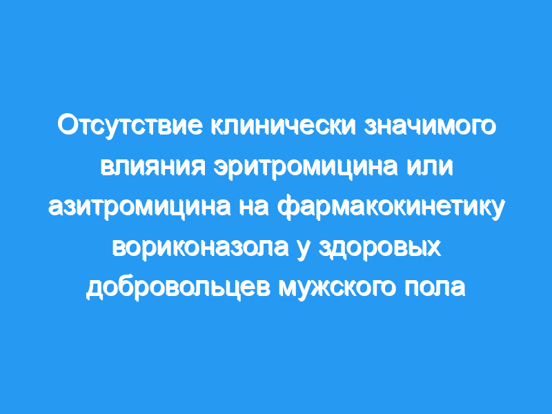 Одновременное применение эритромицина или азитромицина не влияет на устойчивый-оценить фармакокинетику вориконазола клинически значимым образом у здоровых субъектов мужского пола.