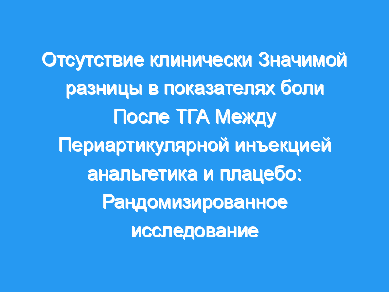 Периартикулярная инъекция анальгетика для контроля боли после ТГА не привела к клинически значимому уменьшению боли ни в одной из обследованных точек. Учитывая затраты, связанные с этой смесью PAI, и недостаточную эффективность вне этого срока, мы не можем рекомендовать ее использование. Другие смеси или концентрации лекарств могут быть полезны при кратковременной госпитализации по поводу ТГА, но это потребует дальнейших исследований. Уровень доказательности: Уровень I, терапевтическое исследование.