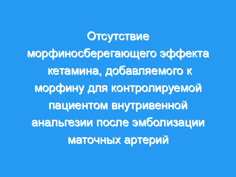 Изучая невыбранную группу пациенток, перенесших эмболизацию UAEs для лечения симптоматической лейомиомы матки в условиях базальной анальгезии ацетаминофеном и диклофенаком, мы не смогли продемонстрировать какого-либо морфинсберегающего эффекта внутривенного введения кетамина и морфина по сравнению с внутривенным введением только морфина.