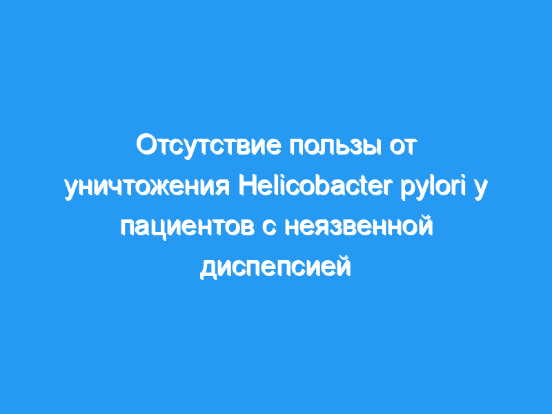 Связь между инфекцией Helicobacter pylori и неязвенной диспепсией является неопределенной. Мы проверили гипотезу о том, что лечение инфекции облегчит симптомы диспепсии.