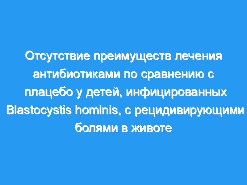 Целью исследования было выяснить, можно ли успешно лечить рецидивирующие боли в животе (RAP) у детей, инфицированных Blastocystis hominis, с помощью триметоприм-сульфаметоксазола (TMP/SMX).