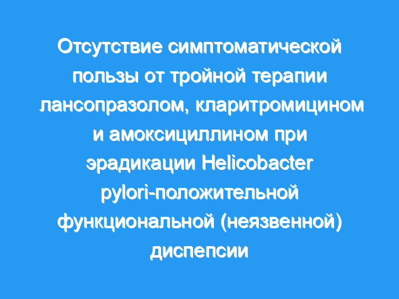 Целью данного исследования было сравнить влияние комбинации лансопразола, кларитромицина и амоксициллина (LCA) по сравнению с плацебо на тяжесть симптомов у пациентов с функциональной диспепсией, у которых был положительный результат на Helicobacter pylori (H. pylori).