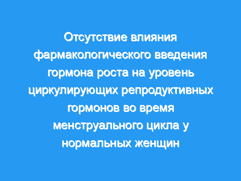 Оценить влияние фармакологического введения гормона роста (GH) на секрецию гормонов гипофиза и гонад во время менструального цикла у нормальных женщин. Дизайн: Рандомизированный, двойной слепой, плацебо-контролируемый перекрестный дизайн. Пациенты, участники: Шесть здоровых женщин с нормальной менструацией в возрасте от 22 до 24 лет и с нормальным индексом массы тела. Вмешательства: Каждый участник получал плацебо и гормон роста (12 МЕ/сут) в течение двух разных 14-дневных периодов, разделенных 6-недельным периодом вымывания. Основные показатели результатов: сывороточный инсулиноподобный фактор роста I (IGF-I), эстрадиол, прогестерон, фолликулостимулирующий гормон и лютеинизирующий гормон.
