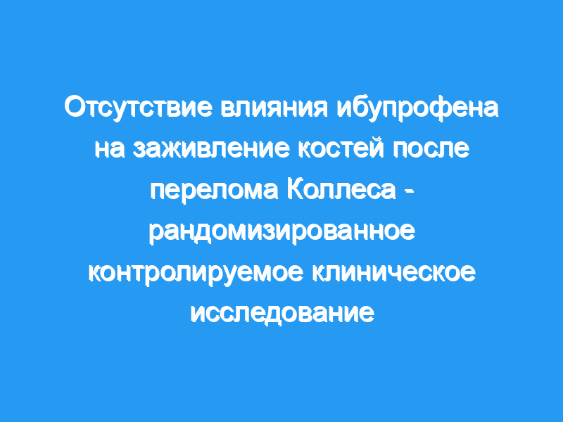 Нестероидные противовоспалительные препараты (НПВП) могут замедлить заживление костей. Эти знания в основном получены из ретроспективных неконтролируемых клинических исследований и экспериментов на животных. Целью этого проспективного контролируемого исследования было выяснить, влияет ли ибупрофен на боль, функцию и заживление костей после перелома Коллеса. Пациенты и методы: Одноцентровое, тройное слепое, рандомизированное клиническое исследование. В исследование были включены 95 пациентов, 80 женщин и 15 мужчин, со смещенным переломом колена в возрасте в среднем 65 (диапазон 40-85) лет, которые были прооперированы методом внешней фиксации с июня 2012 по июнь 2015 г. 89 участников получали интервенционную терапию, а 83 завершили годичное наблюдение. 7-дневная группа ибупрофена получала 600 мг ибупрофена три раза в день, 3-дневная группа ибупрофена получала ибупрофен в течение трех дней и плацебо в течение следующих четырех дней, и, наконец, группа плацебо получала плацебо в течение семи дней. Все пациенты получали парацетамол по 1000 мг четыре раза в день и при необходимости 50 мг трамадола. Первичным результатом были рентгенологические изменения наклона, длины и наклона лучевой кости, наблюдавшиеся во время и через 6 недель после операции. Обезболивающим результатом было 14-дневное ощущение боли и зарегистрированное применение трамадола. Функциональными результатами были процентные различия в движении между поврежденным и неповрежденным запястьем, а также оценка DASH через 3 и 12 месяцев. Все анализы были проведены в соответствии с намерением лечить.