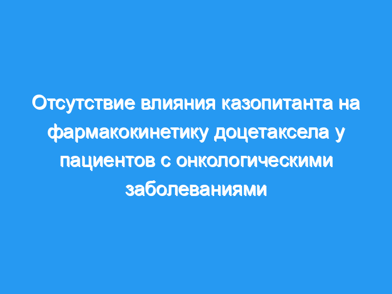 Среднее геометрическое значение наименьших квадратов для режима B: Режим A (90% доверительный интервал) для максимальной концентрации доцетаксела в плазме и площади под кривой концентрация-время от времени 0, экстраполированной до бесконечности, составило 0,97 (0,83, 1,12) и 1,06 (0,94, 1,19) соответственно.. Одновременное применение казопитанта и доцетаксела хорошо переносилось, при этом профили нежелательных явлений и абсолютные значения nadir нейтрофилов были одинаковыми для обоих методов лечения.