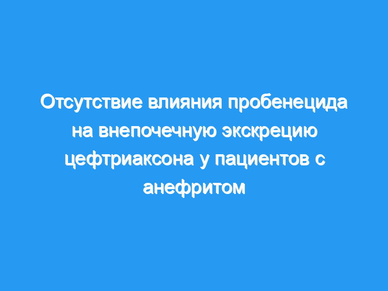 Каждый пациент получал 0,5 г цефтриаксона внутривенно без пробенецида и с пробенецидом (0,5 г за 10 и 2 часа до приема цефтриаксона и 0,5 г q12h X 3 дозы после приема цефтриаксона). Серийные образцы крови отбирали в течение 48 часов, а плазму анализировали на цефтриаксон методом высокоэффективной жидкостной хроматографии (ВЭЖХ). Фармакокинетический анализ был основан на независимом от модели подходе.