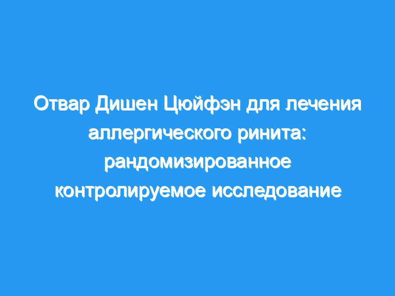 Для наблюдения за клиническими терапевтическими эффектами отвара Дишен Цюйфэн (DSQFD), составной традиционной китайской фитотерапии, при лечении аллергического ринита.