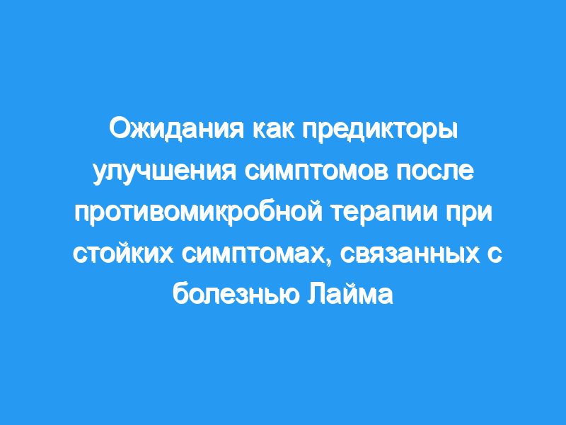 Настоящее исследование показывает, что, помимо функционирования до лечения, ожидания пациентов до лечения и после лечения в отношении улучшения стойких симптомов, связанных с болезнью Лайма, связаны с более благоприятным течением симптомов. Ожидания пациентов могут иметь значение для объяснения и потенциального улучшения результатов лечения пациентов (например, путем оптимизации информирования об успехе лечения). Пробная регистрация: ClinicalTrials.gov , NCT01207739 (Дата регистрации: 23-09-2010) Ключевые моменты • Поскольку в настоящее время нет достаточного разрешения симптомов или улучшения симптомов у многих пациентов с постоянными симптомами, приписываемыми болезни Лайма, важно знать, какие факторы определяют прогрессирование симптомов и прогнозируют неоднородность ответа на лечение. • Помимо эффективности до начала лечения, ожидания улучшения симптомов и приема исследуемых противомикробных препаратов связаны с более благоприятным течением симптомов как после краткосрочной, так и после долгосрочной противомикробной терапии. • Ожидания важны для рассмотрения в исследованиях лечения и могут быть полезны в клинических условиях для улучшения течения симптомов и результатов лечения (например, путем оптимизации информирования об успехе лечения).