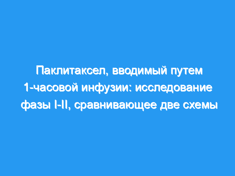 Паклитаксел в настоящее время вводят путем длительной внутривенной инфузии главным образом из-за тяжелых реакций гиперчувствительности, которые возникали при быстрых инфузиях на ранних клинических стадиях. В этом исследовании I-II фазы оценивается целесообразность 1-часового введения паклитаксела и сравнивается токсичность и эффективность двух различных 1-часовых схем инфузии. Пациенты и методы: Сто шестьдесят четыре пациента с прогрессирующим, рефрактерным раком были рандомизированы для получения одного из двух режимов приема паклитаксела: 1-часовая инфузия или 3-дневная разделенная схема приема, каждая суточная доза вводится путем 1-часовой инфузии. Первые 60 пациентов получили общую дозу паклитаксела 135 мг/м2, а остальные 104 пациента получили 200 мг/м2. Всем пациентам была проведена премедикация дексаметазоном, димедролом и циметидином. Цитокины обычно не использовались.
