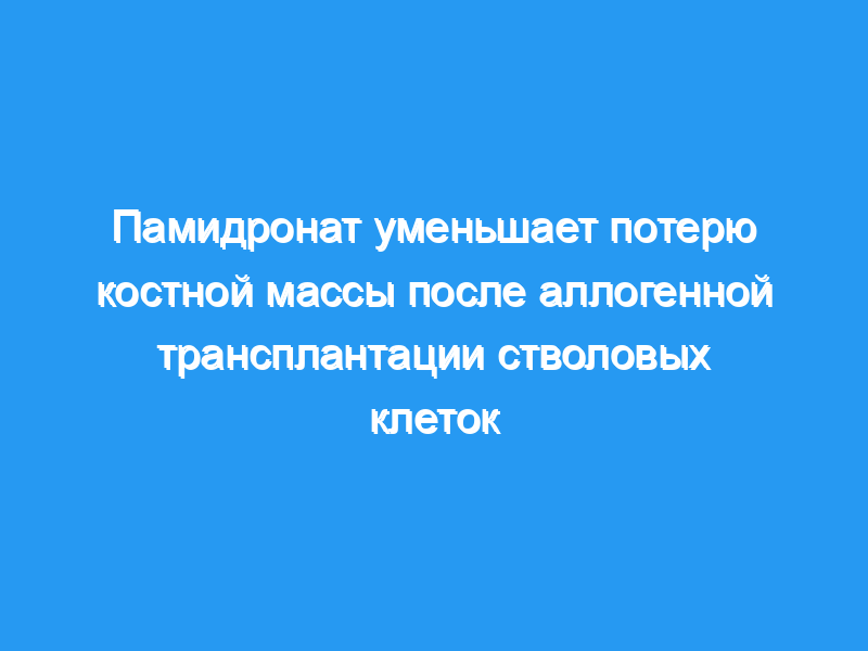 Памидронат заметно уменьшал, но не полностью предотвращал потерю костной массы после аллогенной трансплантации костного мозга. Преимущества МПКТ были наибольшими у пациентов, получавших более высокие дозы иммуносупрессивной терапии, но большинство из них были потеряны через 12 месяцев после прекращения приема памидроната. Исследования более мощных бисфосфонатов или анаболической терапии с использованием ПТГ после аллоСКТ оправданы с целью длительного поддержания костной массы.