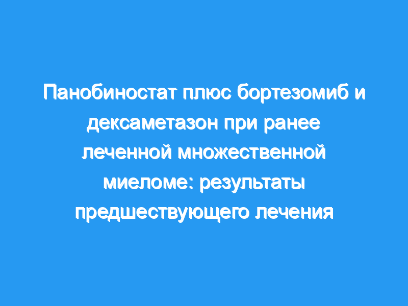В этом анализе подгрупп оценивались исходы у пациентов в исследовании PANORAMA 1 на основе предшествующего лечения: предшествующий иммуномодулирующий препарат (имидазол, n = 485), предшествующий бортезомиб плюс имидазол (n = 193) и ≥2 предшествующих схем, включая бортезомиб и имидазол (n = 147). Медиана PFS с PAN-BTZ-Dex и Pbo-BTZ-Dex в подгруппах была следующей: предшествующий ИМиД (12,3 против 7,4 месяцев, отношение рисков [ОР] 0,54, 95% доверительный интервал [ДИ] 0,43-0,68), предшествующий бортезомиб плюс ИМиД (10,6 против 5,8 месяцев, ОР, 0,52, 95% ДИ 0,36-0,76) и ≥2 предыдущих схем лечения, включая бортезомиб и имидазол (12,5 против 4,7 месяцев, ОР 0,47, 95% ДИ 0,31-0,72). Общие нежелательные явления 3/4 степени и лабораторные нарушения у пациентов, получавших PAN-BTZ-Dex в группах предшествующего лечения, включали тромбоцитопению, лимфопению, нейтропению, диарею и астению/утомляемость.