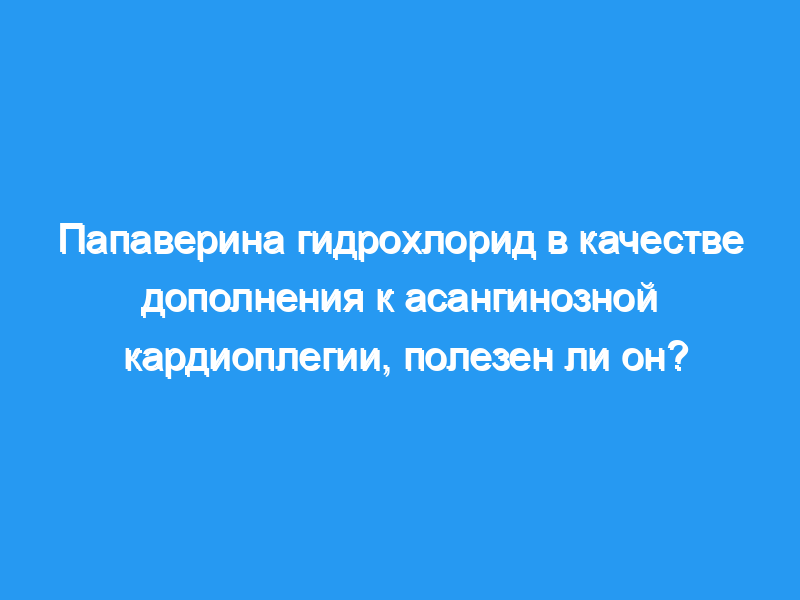 Это исследование, в отличие от опыта с моделями исследований на животных, не продемонстрировало какой-либо существенной пользы при добавлении папаверина гидрохлорида к стандартным кардиоплегическим растворам.< / p>